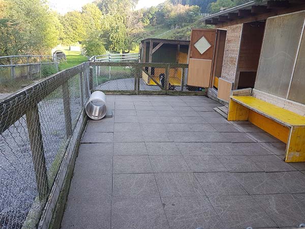 Unsere Hundezuchtanlage haben wir mit grösster Aufmerksamkeit und langjährigen Fachkenntnissen gebaut. Die Anlage ist sehr grosszügig und lichtdurchflutet konzipiert. Deshalb besteht der Zwingerboden aus Steinplatten, welche sich täglich porentief reinigen lassen. Spielmöglichkeiten hat es für die Tiere wahrlich genügend: von Durchschlupfröhren bis zu den Baumstämmen etc., alles was das Hundeherz erfreut. Jeder Zwinger hat eine eigene mit Teppich oder Decken ausgestattete Hundehütte, für den behaglichen Rückzug unserer Tiere.